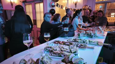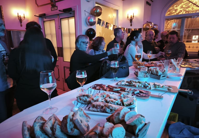 Nos puedes encargar un picoteo con consumiciones, una tarta de cumpleaños, un vino español o una barra libre